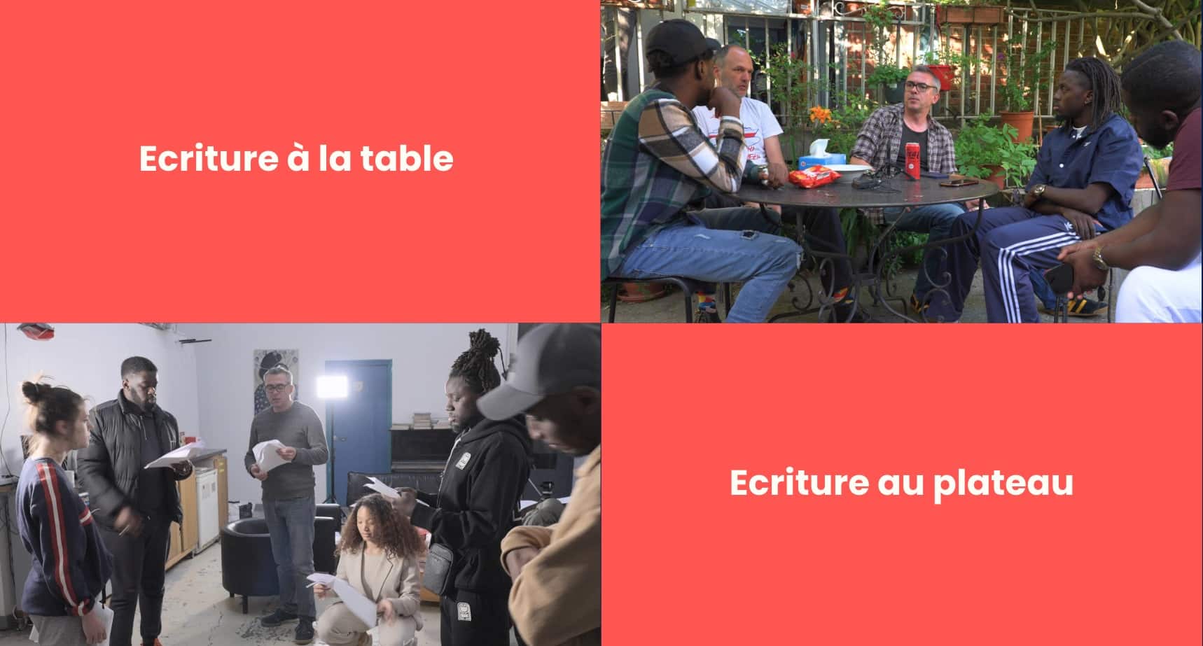 David et Damien, les deux auteurs, ont développé le scénario entre écriture “à la table” et “au plateau” avec les comédiens par des exercices d’improvisations afin d’éprouver et d’affiner les personnages, les dialogues et le récit.