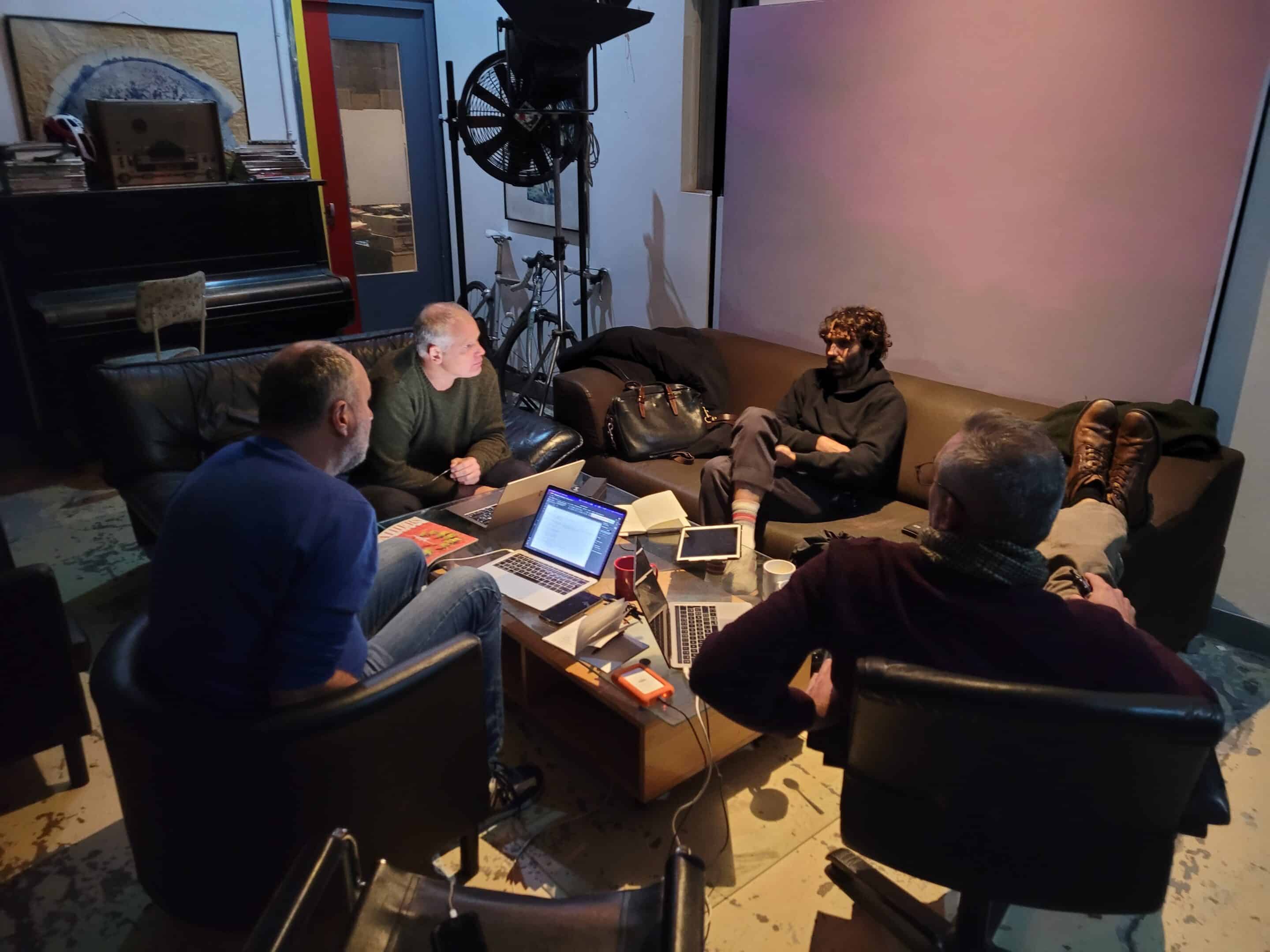 David et Damien, les deux auteurs, ont développé le scénario entre écriture “à la table” et “au plateau” avec les comédiens par des exercices d’improvisations afin d’éprouver et d’affiner les personnages, les dialogues et le récit.